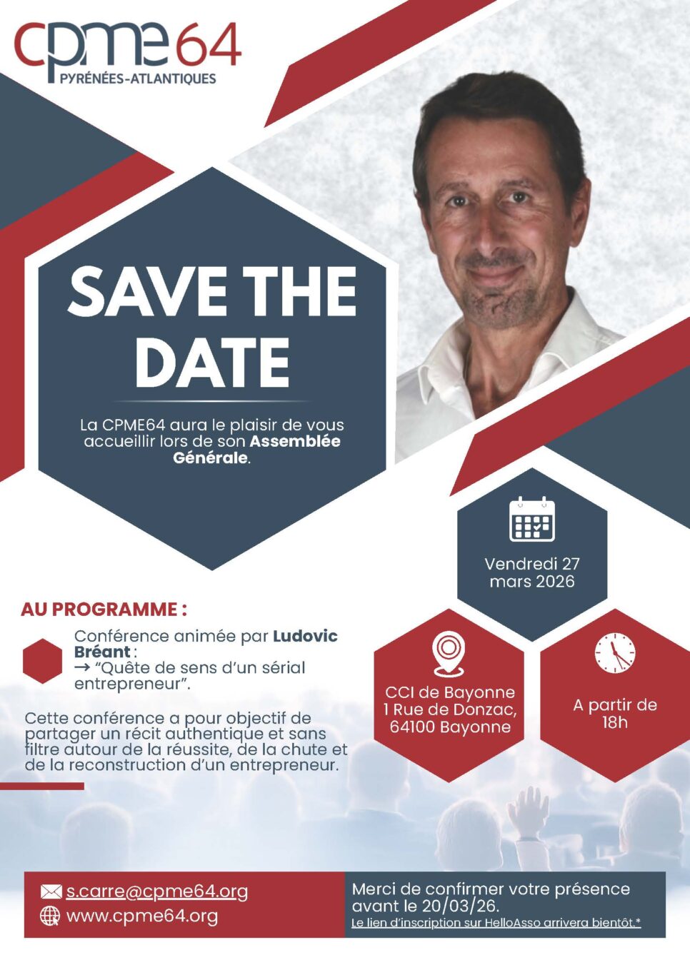 Partager la publication "SAVE THE DATE !!! AG 2026 de votre CPME64"
